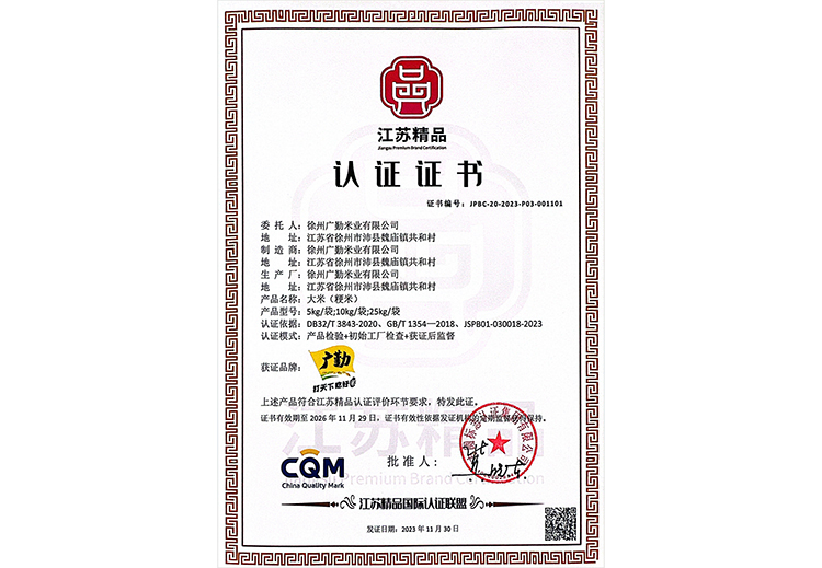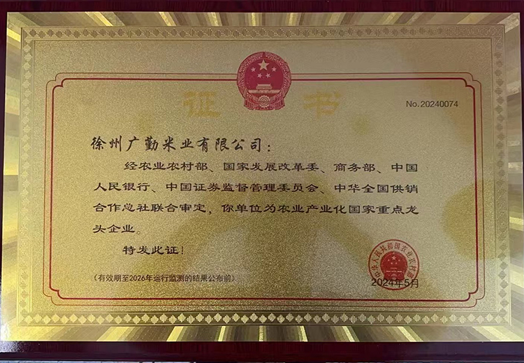 徐州廣勤米業(yè)有限公司位于沛縣魏廟鎮(zhèn)稻米產(chǎn)業(yè)園,公司2010年成立,注冊資金10010萬元人民幣,公司占地面積7萬平方米,總資產(chǎn)3億元,現(xiàn)有員工85人,公司擁有國內(nèi)最先進(jìn)的精米生產(chǎn)線兩條,日生產(chǎn)能力達(dá)1000噸,原糧倉儲能力達(dá)5萬噸,先進(jìn)的設(shè)備設(shè)施為公司發(fā)展奠定了良好的基礎(chǔ)。2023年公司被評定為“農(nóng)業(yè)產(chǎn)業(yè)化國家重點(diǎn)龍頭企業(yè)”,2018年被《中國糧食行業(yè)協(xié)會》評為“全國放心糧油示范工程、示范加工企業(yè)”,2019年被《江蘇省糧食行業(yè)協(xié)會》評為“江蘇大米核心企業(yè)”,公司大米生產(chǎn)管理全面通過ISO22000食品安全管理體系認(rèn)證。2014年“廣勤”牌系列大米獲得徐州市名牌產(chǎn)品稱號…更多...